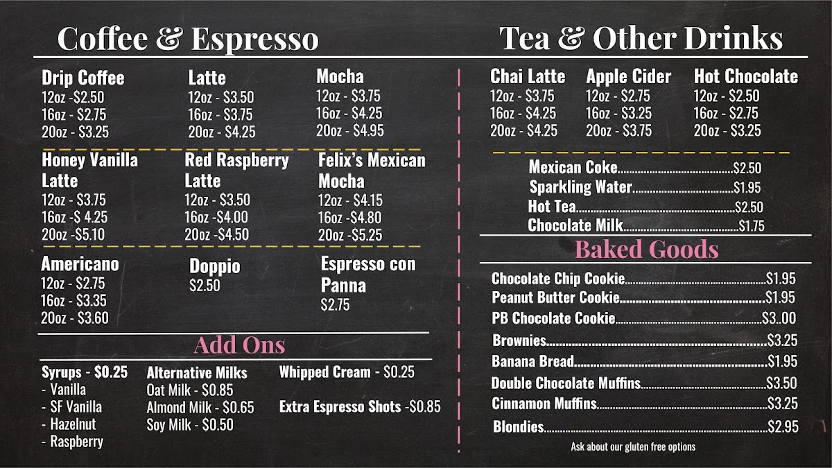 The menu is a haven for drink enthusiasts, showcasing a diverse selection that includes invigorating beverages like the Honey Vanilla Latte and Peppermint Mocha, celebrated for their rich flavors. Bakery offerings are a must-try, with many praising their delicious options, including gluten-free treats.